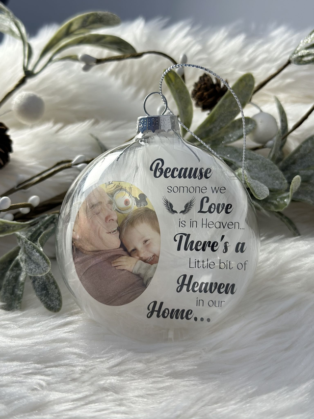 Our stunning glass bauble is not just a Christmas decoration, it's a beautiful way to remember a loved one, with a photograph of your cherished family member or friend to create a touching memorial that can be treasured year after year. This unique gift is expertly crafted from high-quality materials and finished to the highest standard. It's a thoughtful way to honor someone special and keep their memory alive.