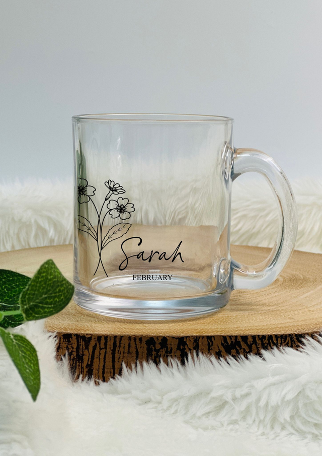 Our Personalised Birth Month Flower Glass Mug is the perfect choice.