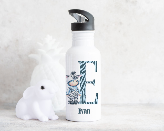 Introducing our Personalised Cute Zebra Water Bottle with Initial Design, available in boy or girl versions.