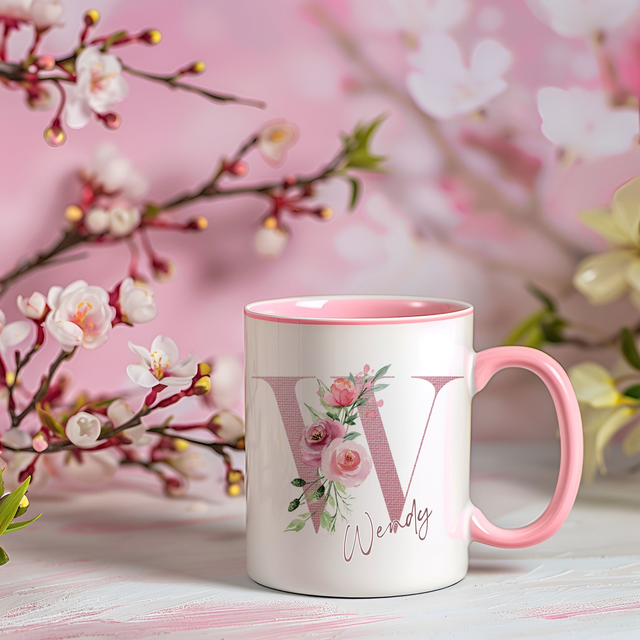 Make your morning coffee or tea more special with our Beautiful Personalised Floral Initial Mug.