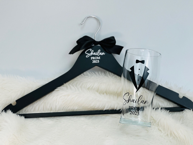 Elevate your prom night experience with our high-quality personalised hanger in black.