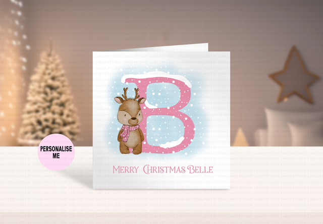Personalised Christmas Initial Reindeer card in Blue or Pink