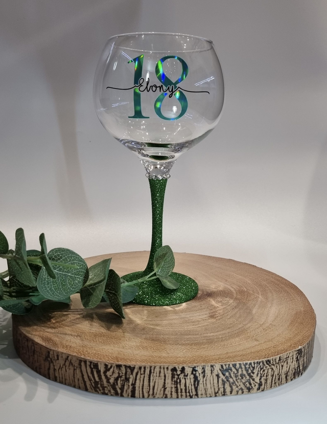 The special age and name of your recipient can be added, and sparkling gems are hand placed at the top of the stem of the glass for extra shine.