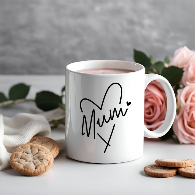 This high-quality 11oz mug features a heart design with "Mum" wording, perfect for showing your love and appreciation.