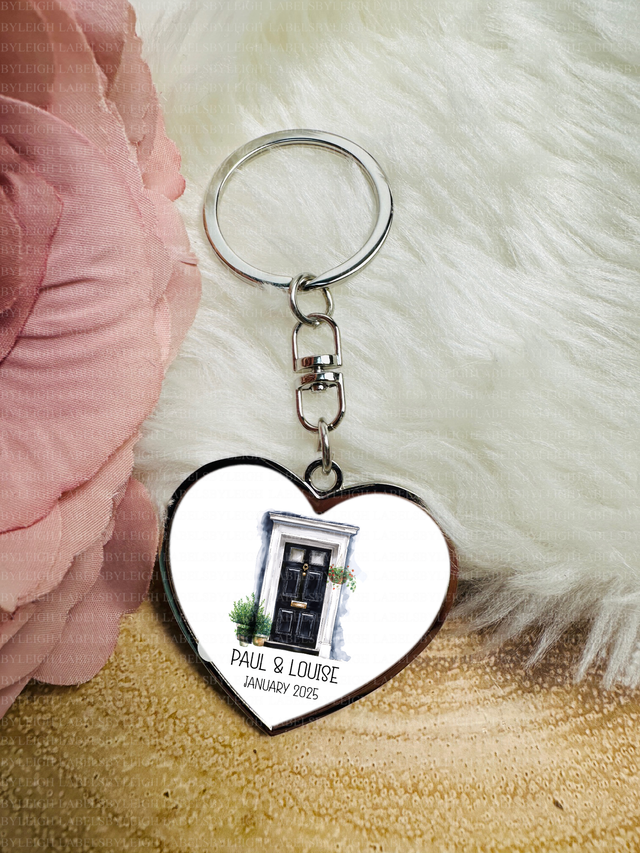 Our personalised metal heart shape New Home keyring is the perfect choice!