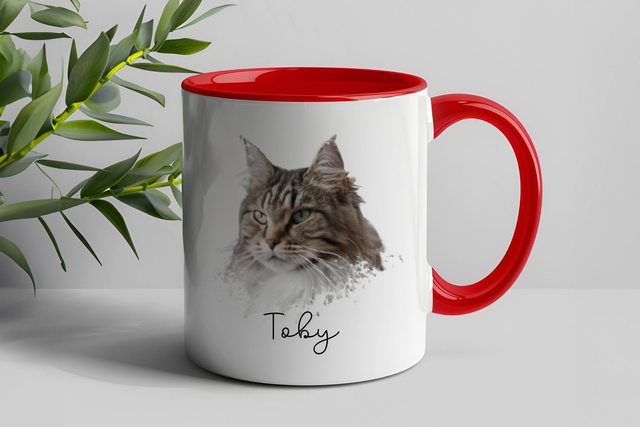 Look no further than our high quality 11oz mug featuring a photograph of their beloved furry friend printed on a colorful and vibrant splatter design.