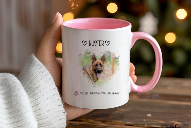 Cherish the memory of your beloved pet with our high quality 11oz memorial photo mug.