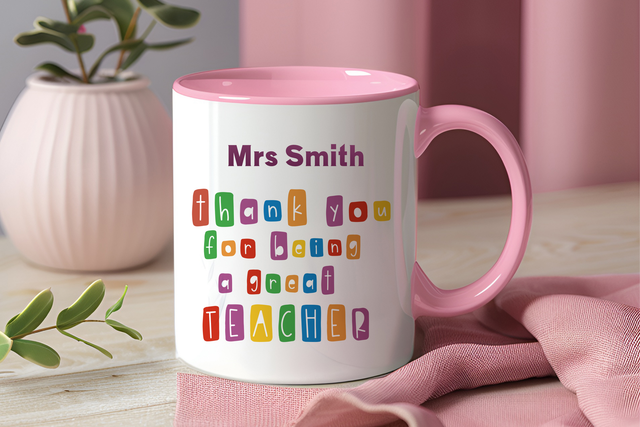 Choose from a variety of different coloured mugs to suit your teacher's preferences.